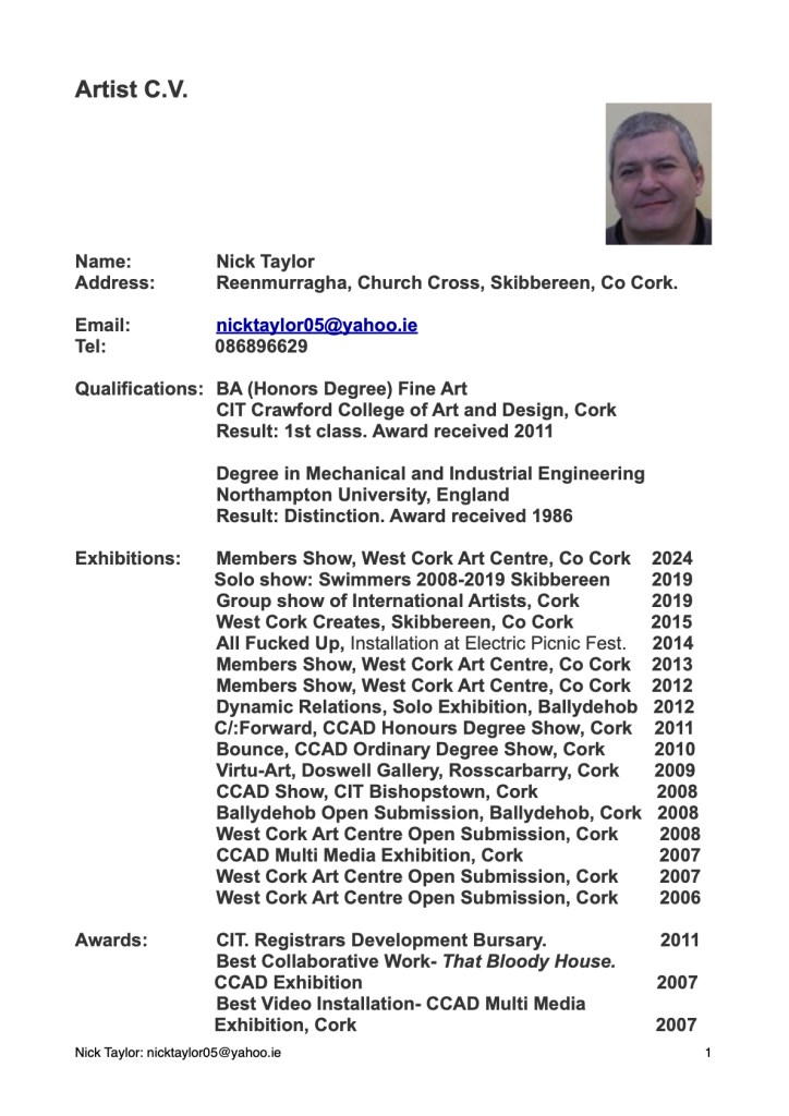 I currently live and work as a practicing artist in West Cork, Ireland.